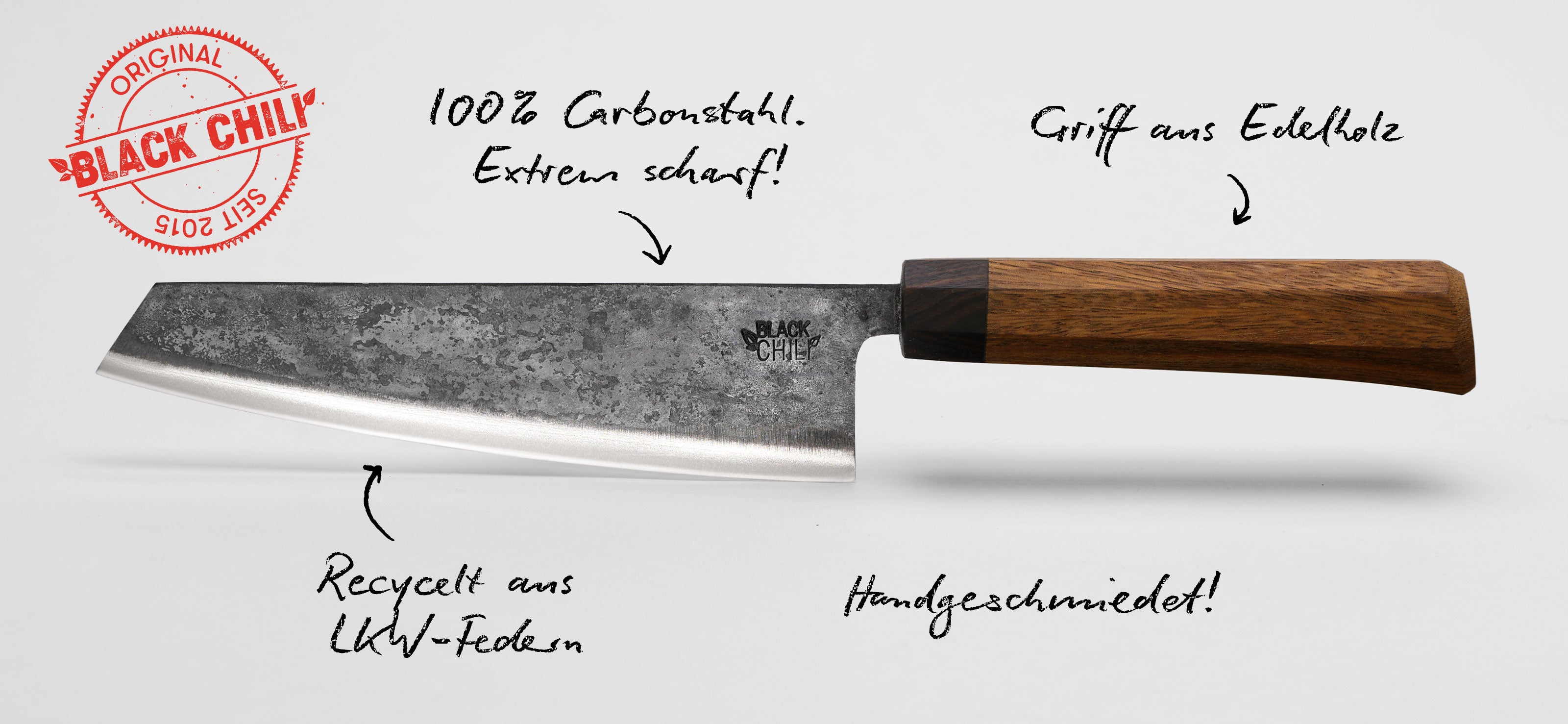 Herzlich willkommen bei Black Chili Messer - deinem Experten für erstklassige Carbonstahlmesser und handgeschmiedete Klingenkunst! Unsere Leidenschaft sind nicht nur einfache Messer, sondern wahre Kunstwerke der Schmiedekunst, die in jeder Küche durch ihre Schärfe, Einzigartigkeit und Qualität beeindrucken.