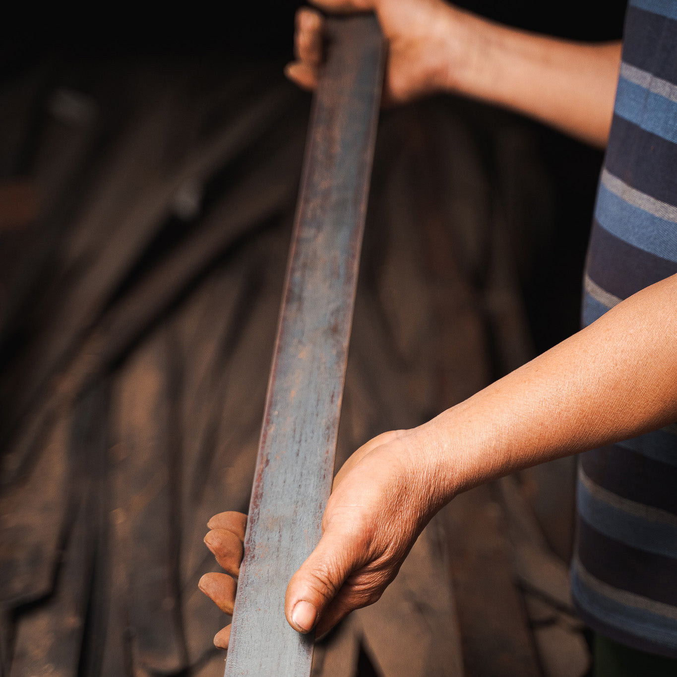 Black Chili Messer bestehen aus ausrangierten Blattfedern - ein Upcycling-Konzept, welches wir in Zusammenarbeit mit den Schmieden vor Ort entwickelt haben.