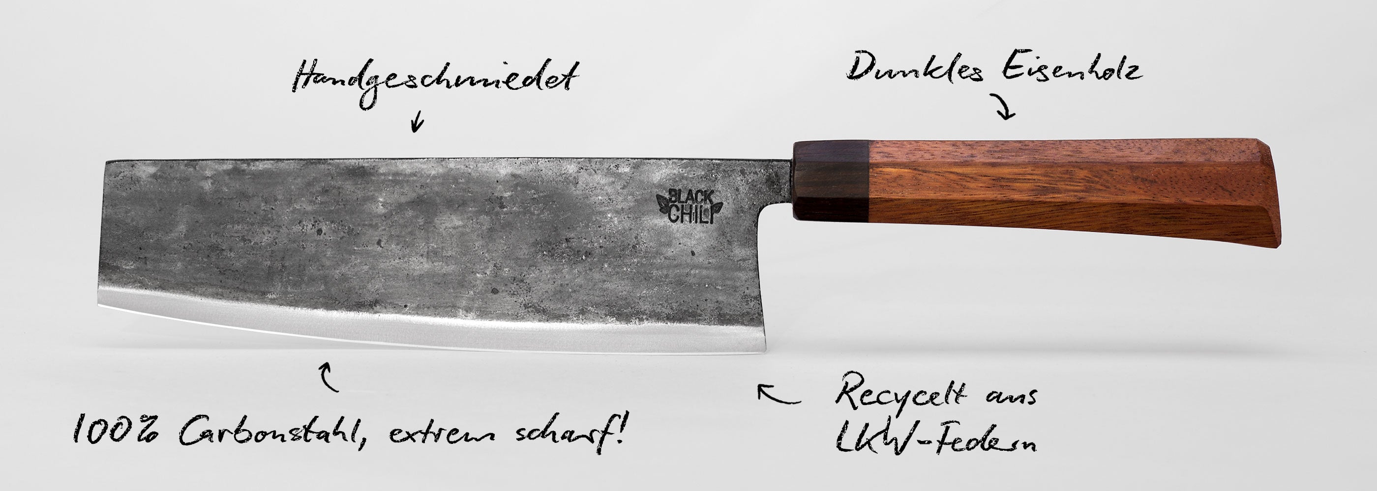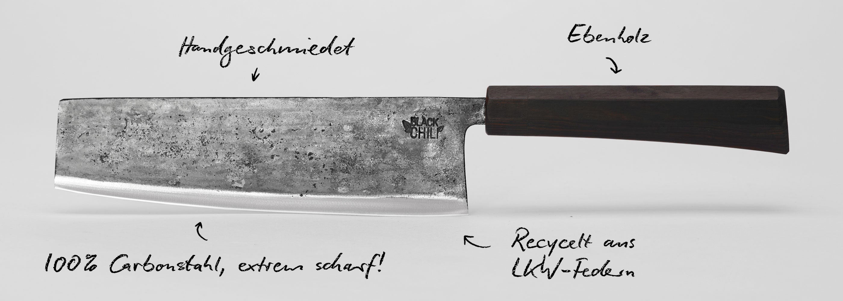 Unser Upcycling-Konzept: Die Klingen unserer Black Chili Messer bestehen aus ausrangierten Blattfedern!