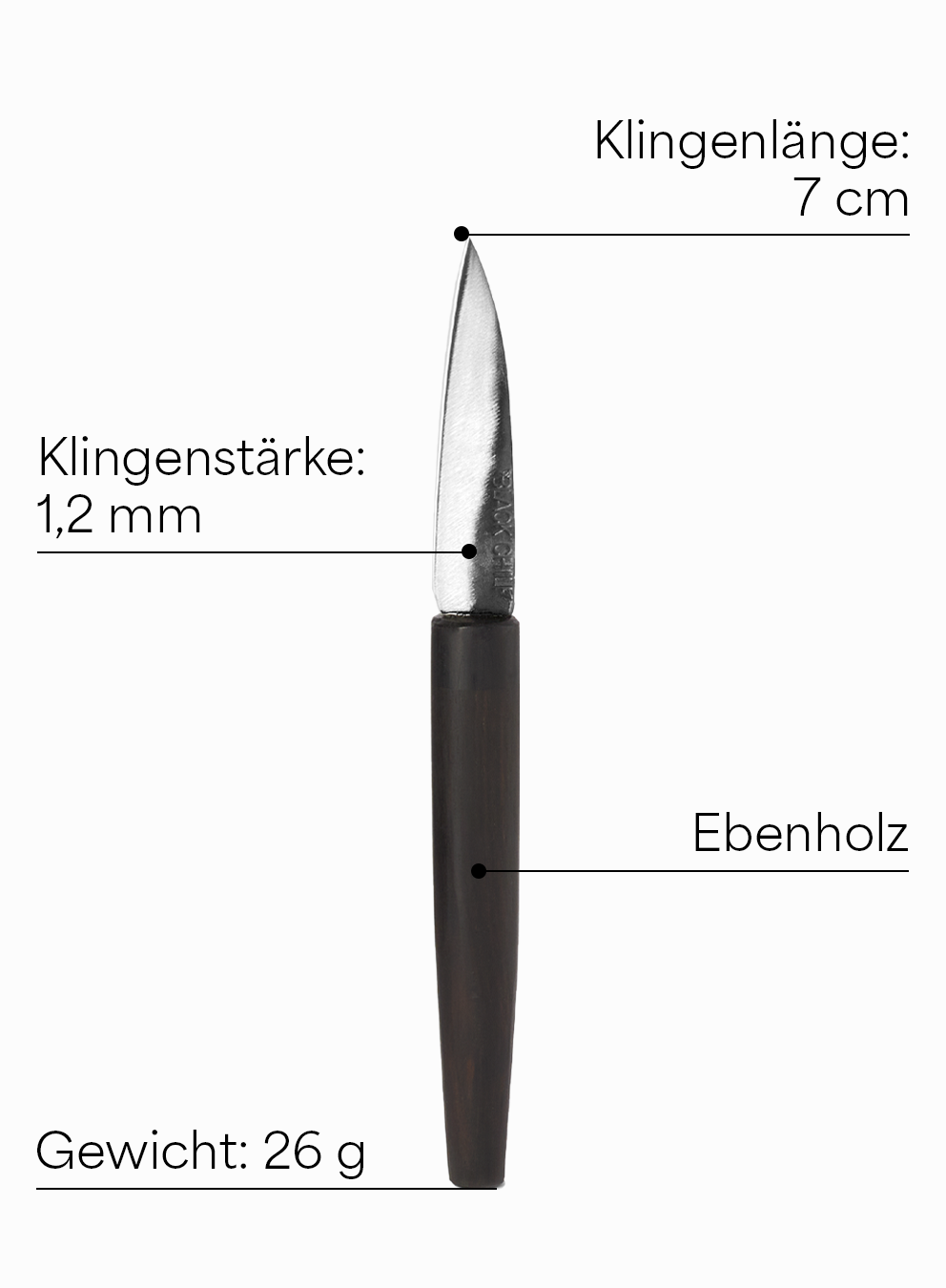 Kneipchen, Knippchen, Hümmelken: Ein langer, dünner Stiel und eine kurze Klinge! Liegt perfekt in der Hand und verleitet zu Virtuosität beim Schälen, Putzen, Entkernen und Portionieren von Obst und Gemüse.
